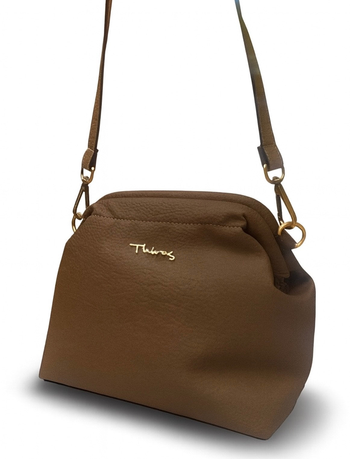 Τσάντα ώμου και χιαστί από υψηλής ποιότητας τεχνόδερμα με το σήμα THIROS. Έχει  λουρί που ρυθμίζεται στο επιθυμητό ,διακριτικές  λεπτομέρειες και  λουράκι που ρυθμίζεται στο επιθυμητό ύψος. Κλείνει με στόμιο, διαθέτει ευρύχωρο εσωτερικό και θήκη, που κλείνει με φερμουάρ.