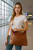 Ευρύχωρη τσάντα ταξιδίου από τεχνητό δέρμα με μεταλλικές λεπτομέρειες. Κλείνει με φερμουάρ, διαθέτει αποσπώμενο λουράκι που ρυθμίζεται στο επιθυμητό ύψος και εσωτερική θήκη που κλείνει επίσης με φερμουάρ.