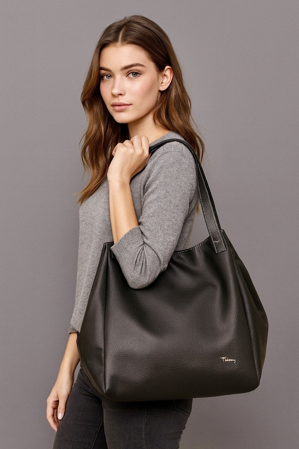 Τσάντα ώμου από μαλακό συνθετικό δέρμα,. Διαθέτει ενιαίο εσωτερικό χώρο, κλείνει με μαγνητικό κλιπ, έχει θήκη για το κινητό και θήκη για μικροαντικείμενα που κλείνει με φερμουάρ.