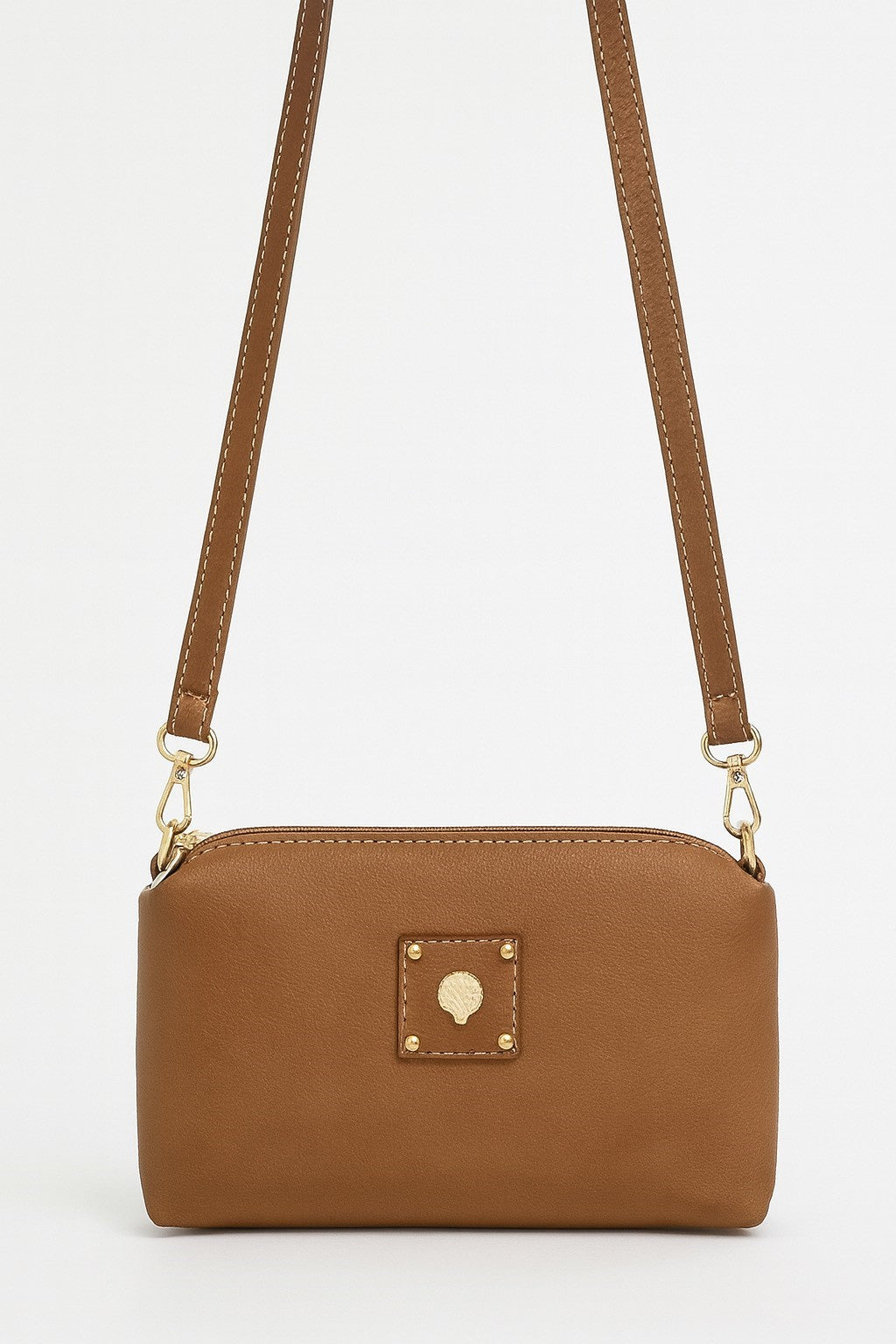 Χιαστί τσάντα από τεχνητό δέρμα με διακριτικές μεταλλικές λεπτομέρειες. Κλείνει με φερμουάρ, φοριέται στον ώμο και χιαστί, έχει μίνιμαλ σχεδιασμό και το ιδανικό μέγεθος για καθημερινή χρήση. Το λουρί του είναι αποσπώμενο και ρυθμίζεται στο επιθυμητό ύψος.