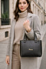 Τσάντα ώμου από τεχνητό δέρμα με διακριτικές μεταλλικές λεπτομέρειες και αποσπώμενο λουράκι που ρυθμίζεται στο επιθυμητό ύψος. Κρατιέται και στο χέρι, κλείνει με φερμουάρ, διαθέτει εσωτερικές θήκες για μικροαντικείμενα.