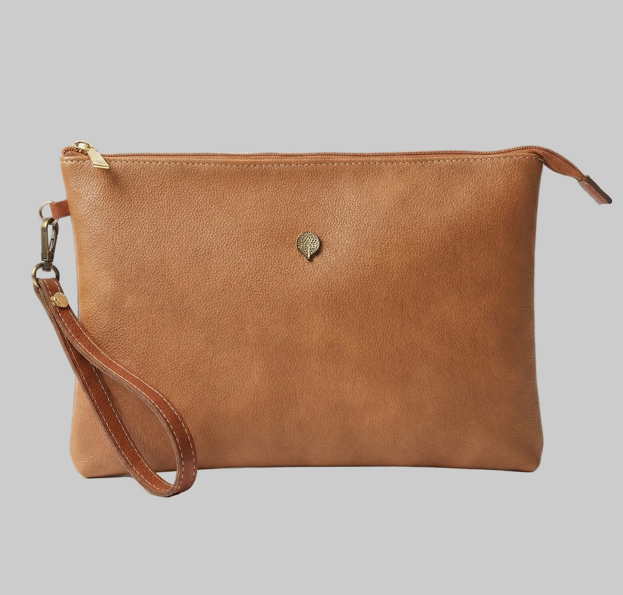 Φάκελος απο τεχνητό δέρμα . Κλείνει με φερμουάρ, διαθέτει ενιαίο εσωτερικό χώρο, εσωτερική θήκη που κλείνει με φερμουάρ και λουράκι που περνάει στον καρπό. Μια κομψή επιλογή ιδανική για βραδινές εξόδους.