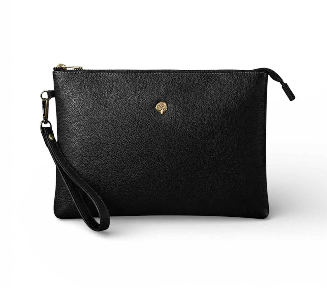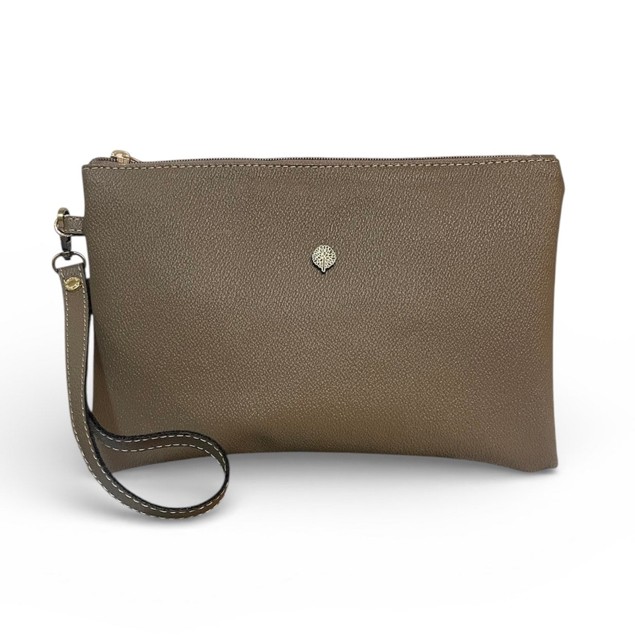 Φάκελος απο τεχνητό δέρμα . Κλείνει με φερμουάρ, διαθέτει ενιαίο εσωτερικό χώρο, εσωτερική θήκη που κλείνει με φερμουάρ και λουράκι που περνάει στον καρπό. Μια κομψή επιλογή ιδανική για βραδινές εξόδους.