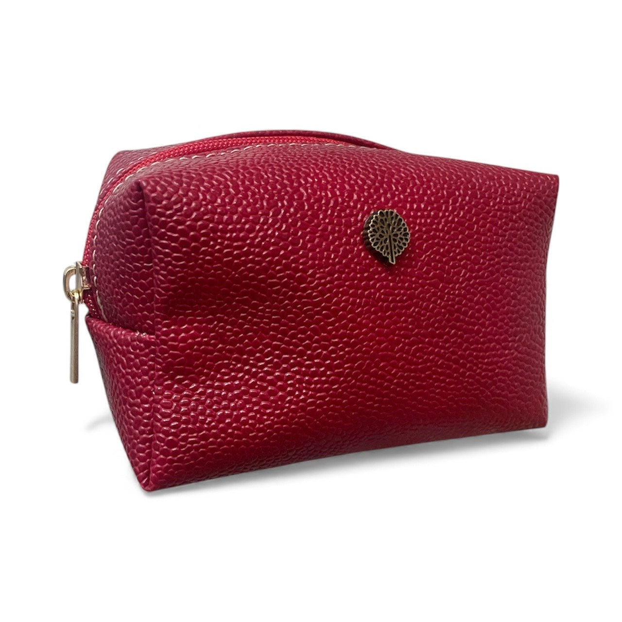 Νεσεσέρ από ύφασμα με τεχνητό δέρμα σε χρώμα κόκκινο. Κλείνει με φερμουάρ και έχει ενιαίο εσωτερικό. Κρατιέται και στο χέρι ως φάκελος ή περασμένο στον καρπό με το λουράκι του.
