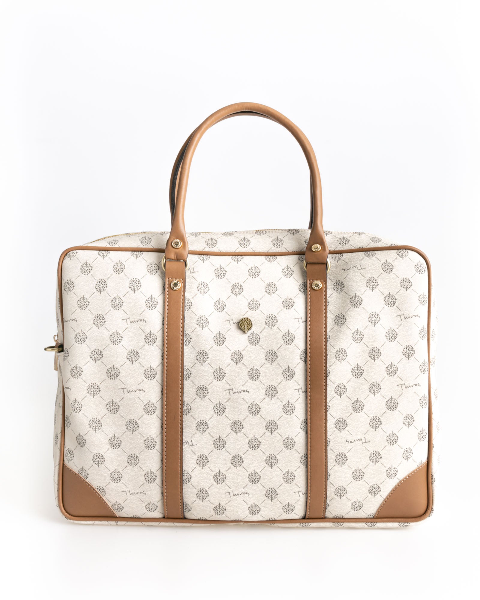 Business τσάντα από τεχνητό δέρμα με το σήμα THIROS και διακριτικές χρυσές λεπτομέρειες. Κλείνει με φερμουάρ, διαθέτει εσωτερική θήκη και το αποσπώμενο λουράκι ρυθμίζεται στο επιθυμητό ύψος.