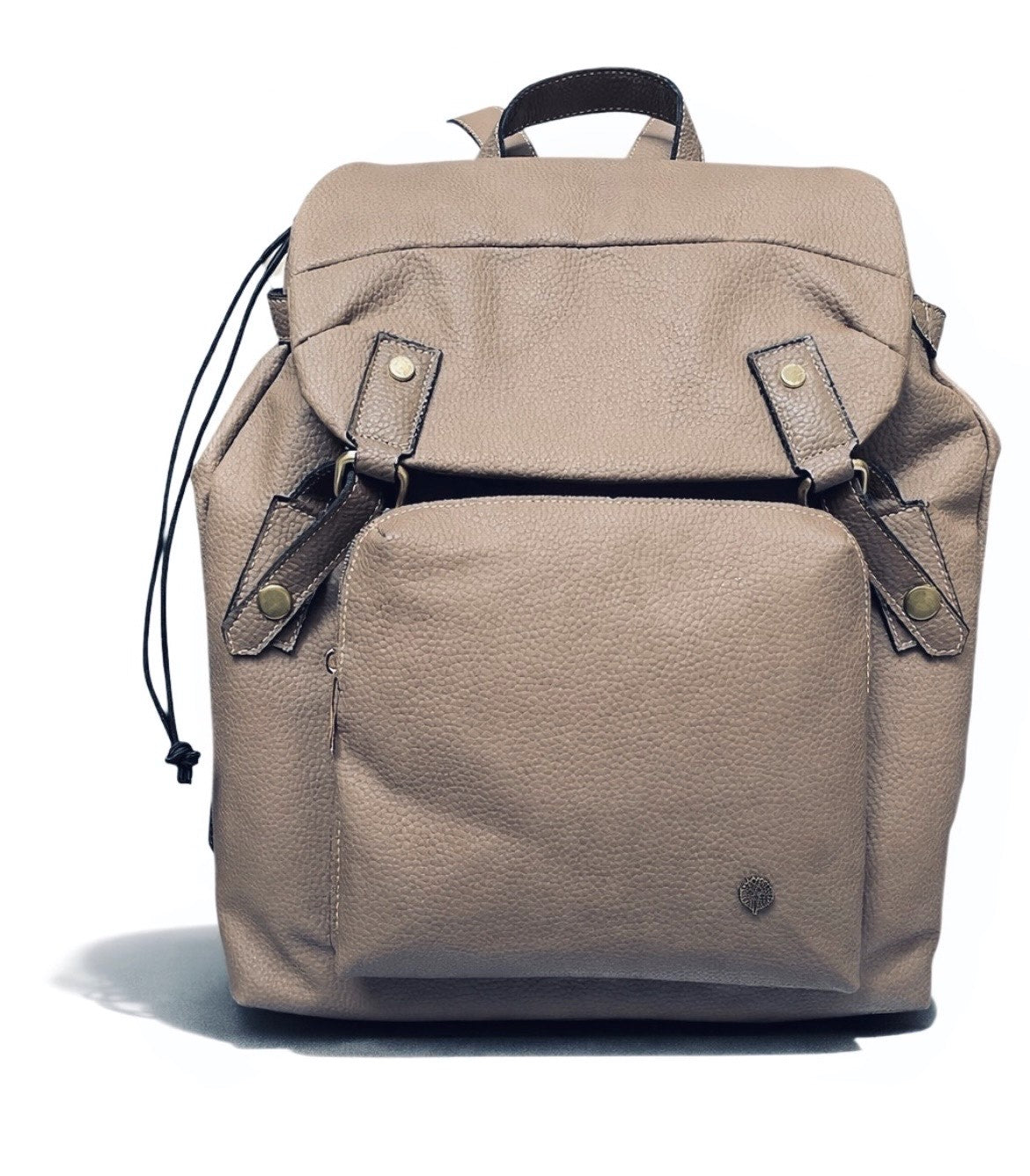Ευρύχωρο unisex σακίδιο από μαλακό τεχνητό δέρμα με διακριτικές μεταλλικές λεπτομέρειες. Διαθέτει θήκες εσωτερικά και εξωτερικά που κλείνουν με φερμουάρ και τα λουράκια της πλάτης ρυθμίζονται στο επιθυμητό ύψος.