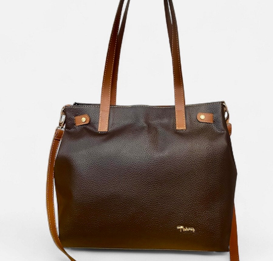 Business τσάντα από δέρμα με διακριτικές λεπτομέρειες και αποσπώμενο λουράκι που ρυθμίζεται στο επιθυμητό ύψος για να φοριέται και χιαστί.