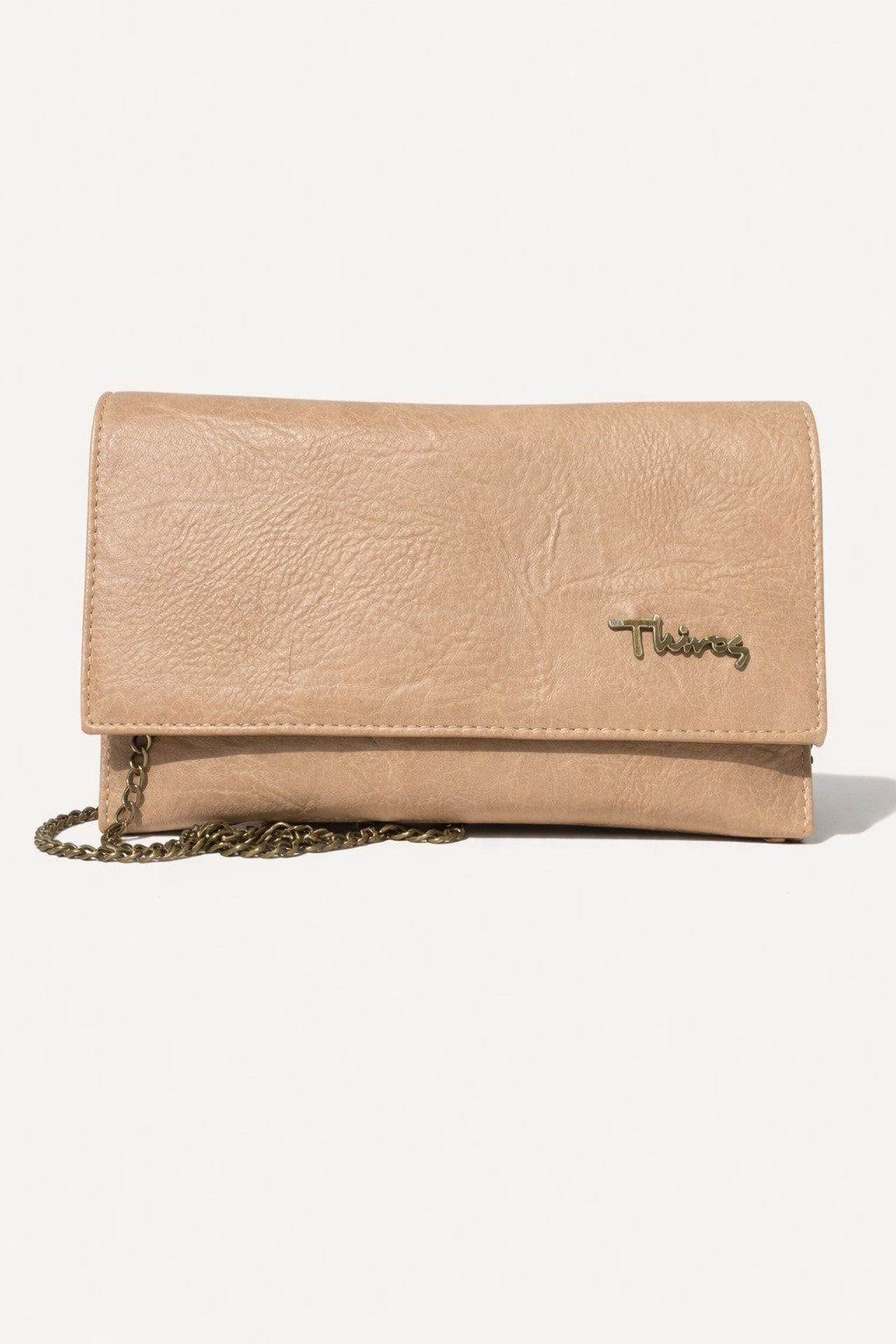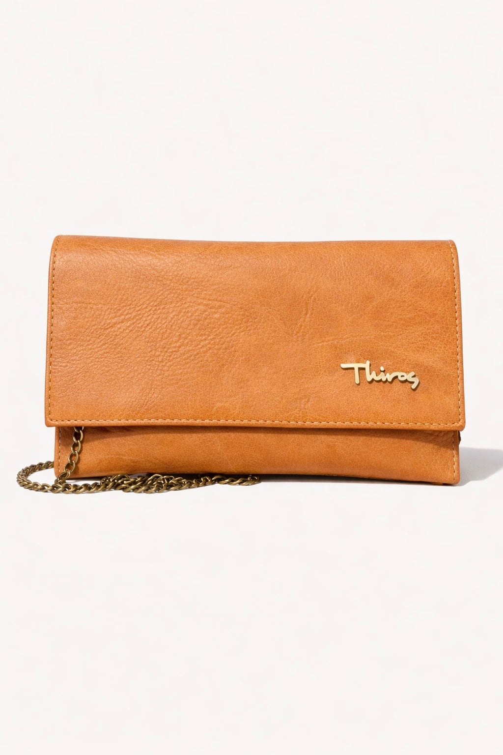 Βραδινός φάκελος από τεχνητό δέρμα με διακριτικό μεταλλικό logo THIROS. Κλείνει με μαγνητικό κούμπωμα και διαθέτει εσωτερική θήκη που κλείνει με φερμουάρ.